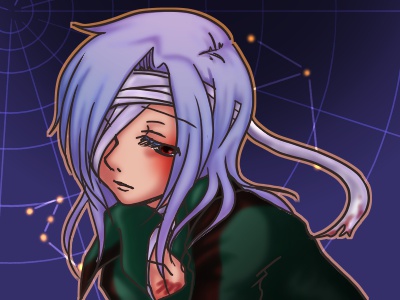 包帯の所為で片目しか描けないけど、たれ目で睫毛バッシバシなこの顔は描いてて楽しいです(´ω`)