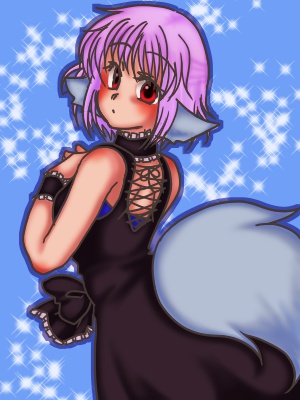 もふもふ尻尾を主張したかったので背を向けた状態から振り向いてる構図にしましたが、背中の服デザインもまた曖昧な記憶からのアレンジとなっております…。・*・:≡( ε:)<ゴメンナサイ!