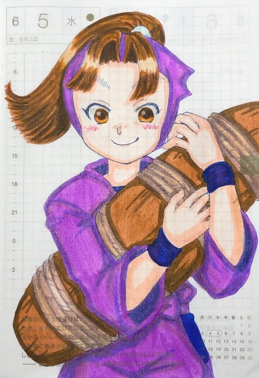 多分参考にした画像をよく見てなかったのが悪かったんですが、手のバンダナは塗り初めて気づきました…最初長袖着てるかと思ったよ。・*・:≡( ε:).oO(急いで描き直しと描き足ししたけど)