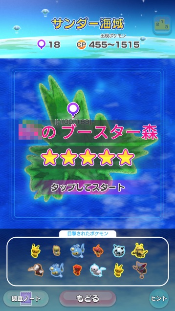 攻略に書いてあったとこをタッチしても、リアルタイムで表示されるヒントをタッチしても全くカスリもしないブースター森…このままじゃサンダー海域前に進めないしどうしよう_(:3」∠)_(※次のぬしに必要なのはでんきタイプなのですが、ブースターが気になりすぎてそれを探しに行く処じゃない…という個人的な理由です。)とか思いながら、諦めそうになりながらも2日間チャレンジしまくったらやっと出会えました。良かった…_:(´ཀ`」 ∠):