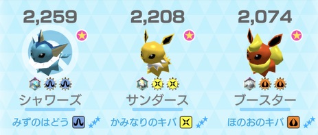 ようやくバトルに使える能力で初代ブイズ3匹を揃える事に成功!