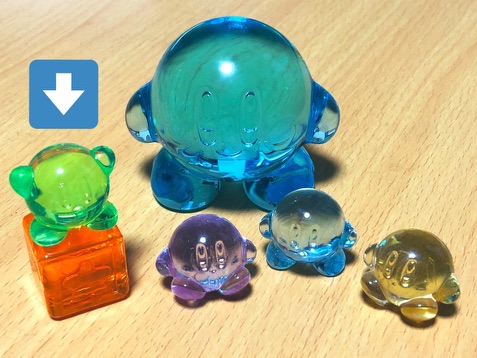 それで、緑カービィも最初はうーんって思ってたんですけど、持って帰ってふと昔GETしたクリスタルカービィを並べてみたら色がバランス良かったので「まぁいっか」と自己満足(´`)