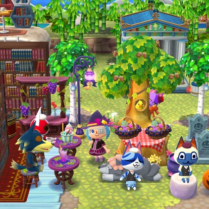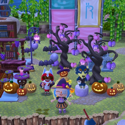 そんな訳でダブったお化けの木と街灯を設置、イベントからはおばけカボチャとコウモリバルーンやら墓石やら設置してみた様子がこちらになります。