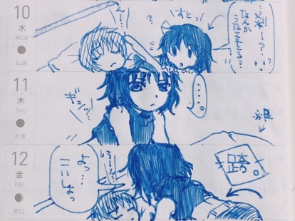 そういえばちょっと今週絵がスランプ気味でしたが、今日描いたりっちゃんで抜け出した感があるので安心しました。片付けで絵描いてないからだろうなー。早くゆっくり描きたい。