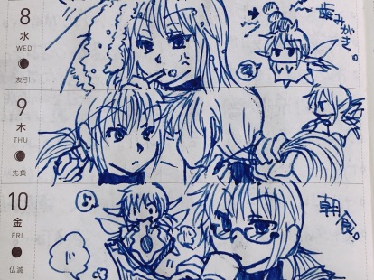 最初は丁寧に描いてたけど、やっぱり同じ絵を繰り返し描いてるとまどろっこしくなってだんだんと下書きが雑に…ゲフンゲフン(