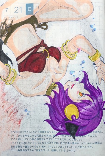 何だろう…そんな時期なのかな?(?) 2年前のあの頃は暑かったから、気分でも涼しそうに描きたいと思って描いた様な気もするけど、今年は本当冷夏で。去年の猛暑は何処へ… 来なくて良いけど。
