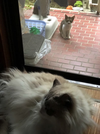 今日も性懲りも無く「アウアウ」鳴きながらやってきました、サバちゃん(←仮の名)。