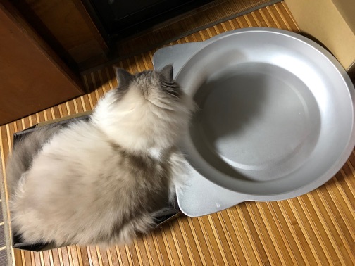 お中元で届いた箱、明らかに小さいんだけどお気に入りみたい…(´`)