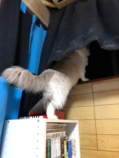 今クーラー直下には小さい本棚があって、すぐ傍にはベッドがあるという感じなので…あと動線的には炬燵のテーブルがあるのでその上に寝転がるんじゃないかなと予想したり。