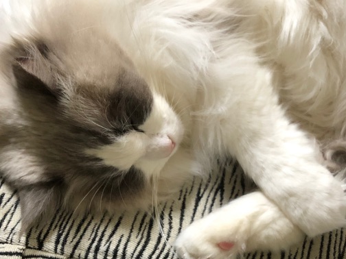 いやね、子猫の時に身体を持ち上げてもぐてーんってなって全く置きない時期とかあったんですよ。大丈夫!?生きてる??!って心配になるくらい(笑