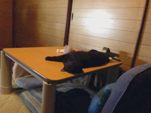 その起きた後に人間が寝てた場所にごろーん!と寝転がって見上げてるのか冒頭の写真です。