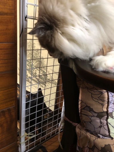 と思い、一時的に2階アムと1階琥珀で住み分けする感じに階段下の扉を閉めて仕切って甥っ子達の前で解放してみました。