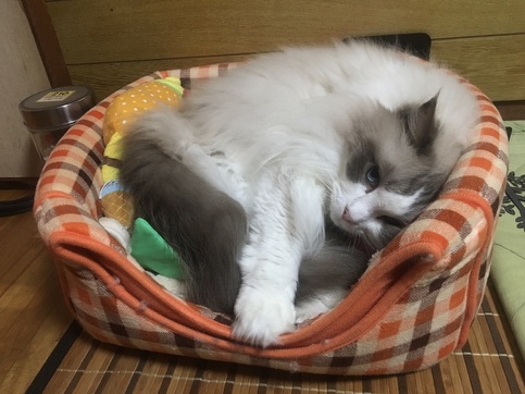廊下にはアム用のベッドがあるし、これから寒くなるから琥珀用のベッド拵えないとな〜と思って用意してみたんですがまぁ琥珀自身はあまり寝てるそぶりはないんですよね。