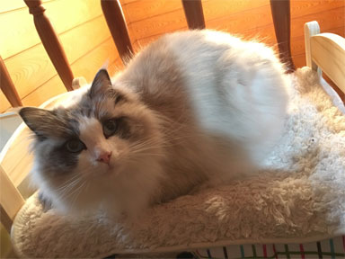 子猫の頃はサイズも小さかったのでよく膝に乗ったり、両足の隙間にすっぽり身体を埋めて仰向けで眠ったりしてそりゃ可愛かったんですが(親バカ)、大人になるとこうサイズがね…特にラグドールもでっかく成長しちゃう品種だからね…膝に乗らないっていうか溢れる(?)んですよね(´・ω・)