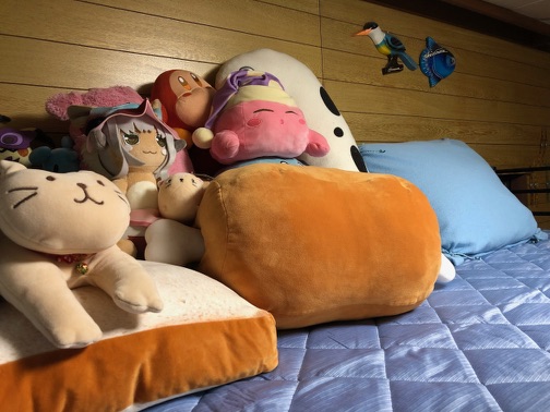 相変わらずのぬいぐるみの量。・*・:≡( ε:).oO(寝転がれる場所があればそれで良いのだ)