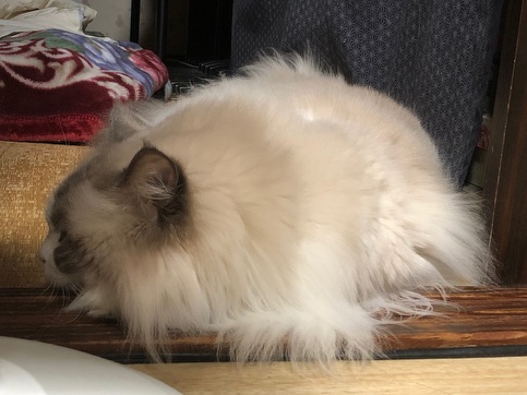 まぁ猫あるあるだと思いますが、わかりやすいのが『新聞読もうと思ったら上に乗ってきた』とか、『掃除しようと思ったら部屋で寛ぎだした』とか、『衣替えしようとタンスを開けたら入ってきた』とか…可愛いから基本許されるんですが、やろうと思ってた事が進まないんですよね(