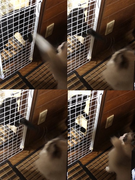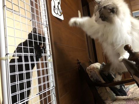 そんな顔合わせ4日目の風景。どうも手が出る2匹。