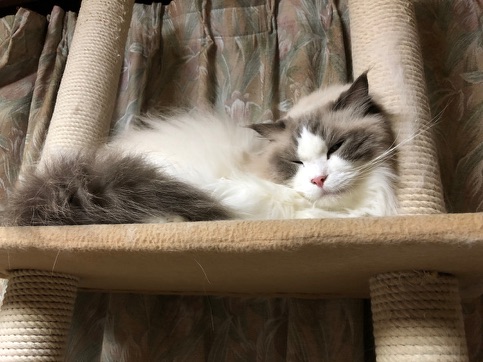 今日は早々キャットタワーに登って( ˘ω˘ )スヤァしてました。