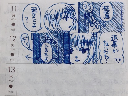 コマ横長だと背景描ける範囲が狭過ぎて”これはなんの物体なのか”って絵で説明するの難しいなぁ…思わずドアって書いちゃった_(:3」∠)_(笑