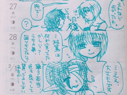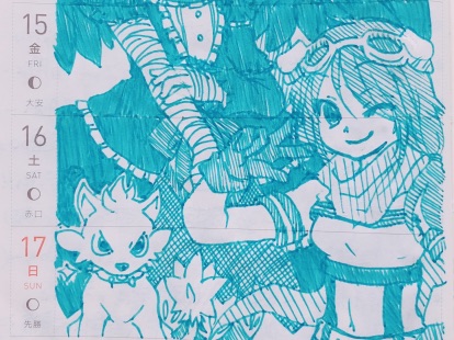 しっかし下書き無しで直で描くのは被り物があるとちょい難しいなぁ。
