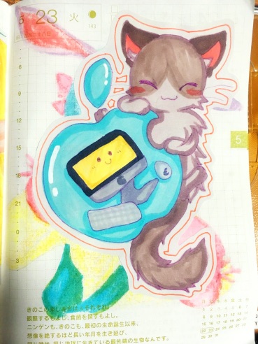 ほぼ日絵日記で書くのは2回目かなー( ˘ω˘ ).oO(初回は狐面で描きました)