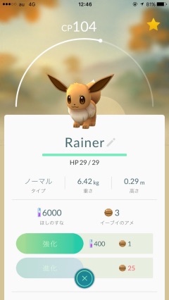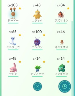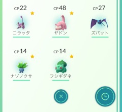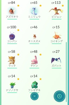 ダブった子はCP低い子を博士に送って、進化に必要だと言われる個々のポケモンのアメを確保。