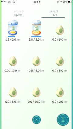 で、2番目の所は必要歩数に達してるのに何故孵化しないんだろう?と思ったらこれおおよその歩数が一覧で確認出来る仕様なんですね。