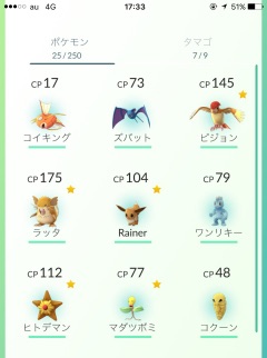 ちなみにピジョンとラッタは自らの手で進化させました!この子らは必要アメ数少なくて有難い。