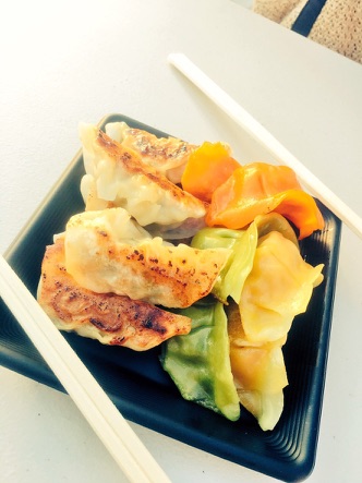 ちなみに赤っぽいのはトマチー(トマトとチーズ)で、淡い黄色っぽいのはカボチャ、緑っぽいのはオクラとの事。餃子のチョイスとしては全部珍しいですよね。