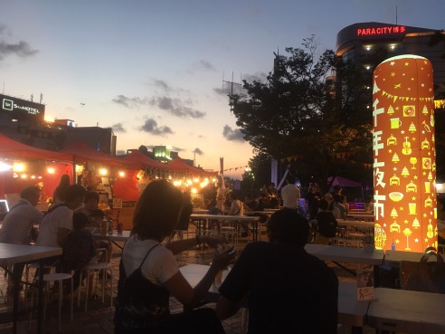 そんな訳で、まだちょっとOPENには早かった様なので(準備中ぽかった)一旦キャナルで1時間程時間をつぶした後、晩御飯がてら夜市に繰り出す事にしました✧*。٩(ˊᗜˋ*)و✧*。